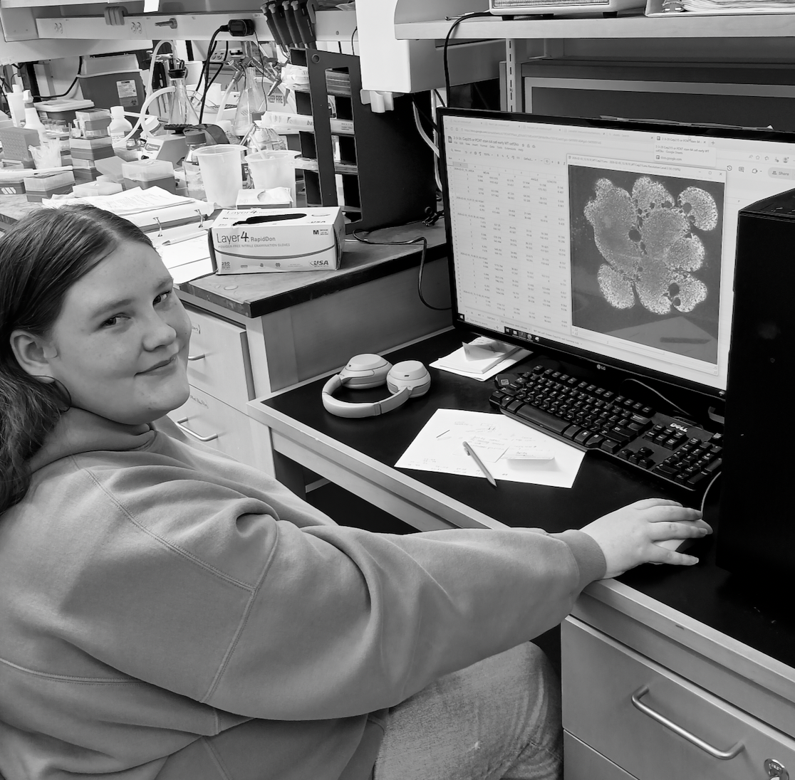 Graduate Student, Lindsay Rathbun, Ph.D. from Syracuse University in March 2020. University of Rochester to work with Dr. Dan Bergstralh’s group (2020-22). University of Rochester’s Microscopy Director (2022-)